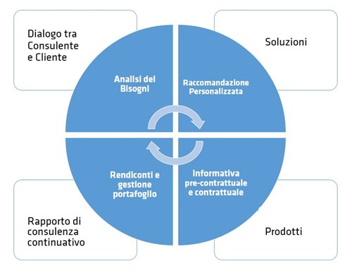 Operiamo stilando una Raccomandazione Personalizzata e garantiamo al cliente un’informativa chiara e trasparente. Mettiamo a disposizione la nostra consulenza per tutta la durata del rapporto di Mandato, quindi sia per la gestione di quanto già intermediato, che per ricercare soluzioni alle nuove necessità che potrebbero emergere nel corso del tempo.
